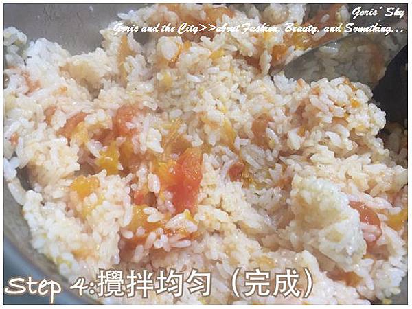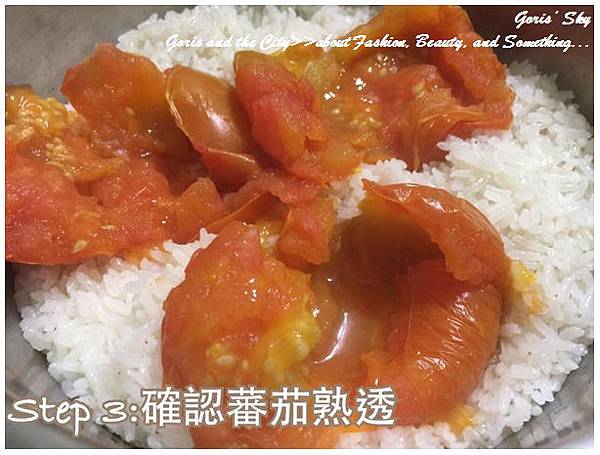 說真的 ...,我覺得沒有很好吃啊,哈哈哈哈哈,我覺得比起整顆番茄飯(我還放了三顆,我寧願番茄炒蛋、番茄蛋包飯、番茄炒飯或是煮成番茄蛋花湯!因為這樣煮,就算加了黑胡椒,也加了橄欖油,味道其實還是很清新耶,清新到,我覺得乾脆白飯自己煮,番茄炒蛋另外炒,再拌在一起吃還比較好吃,甚至,我跟你說,我有一個有點特別的習慣,就是白飯拌可果美番茄醬也超好吃的!