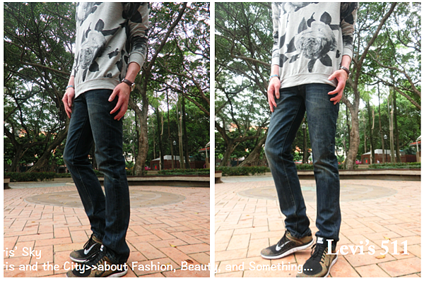 雖然花紋很亂,但穿起來不是那麼明顯,反而感覺剛剛上一件的花紋還更加的誇張,但剛剛上一間間的花紋其實是比較平整的,這件你仔細去看,雖然因為色調深,花紋淺,但細看還是能看到蠻亂的,穿起來也比較率性的潮流感,不過這件不若剛剛那間的布料是伸縮有彈性的,我就要穿到31腰了,剛剛那件,30腰就挺OK了,而且511也是比較高腰的。