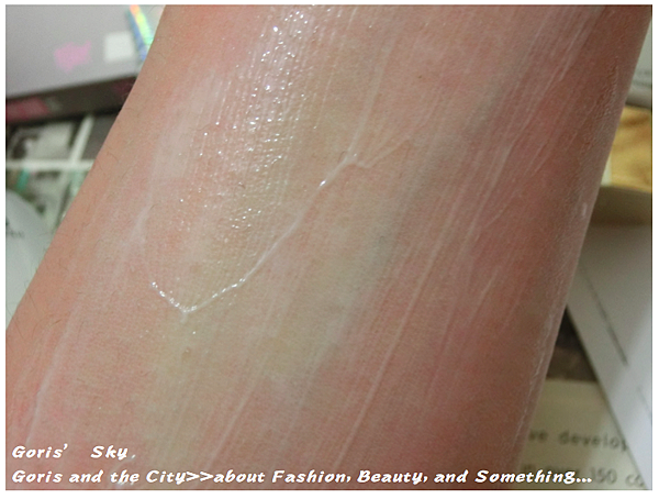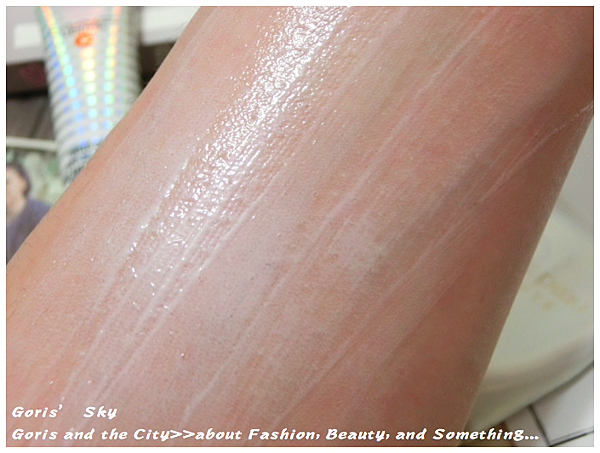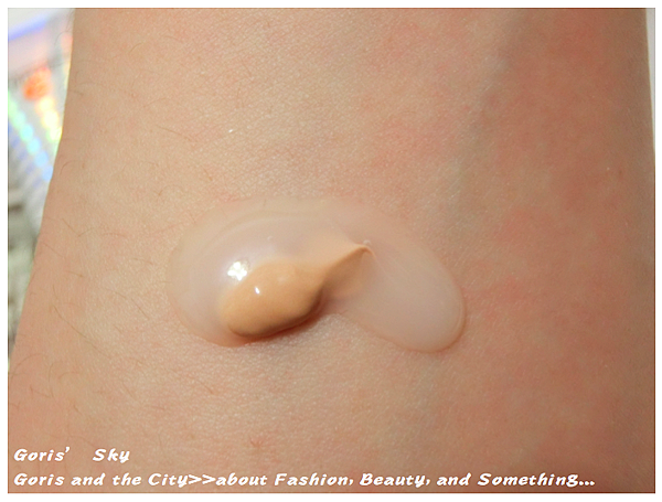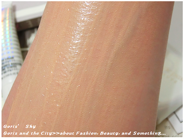 原本很潤的MAC的亮白C隔離霜瞬間就變成很薄透、水潤的潤色隔離霜,而且相當輕盈、水漾,但就像剛剛說的,防曬的定義在於使用的量,而非質地的濃稀程度,所以在有一定的使用量後,同樣有SPF30/PA+++的MAC的亮白C隔離霜,也是能維持這樣等級的防曬規格,但又能作為一班很水潤的隔離霜使用,使用上就更多元。