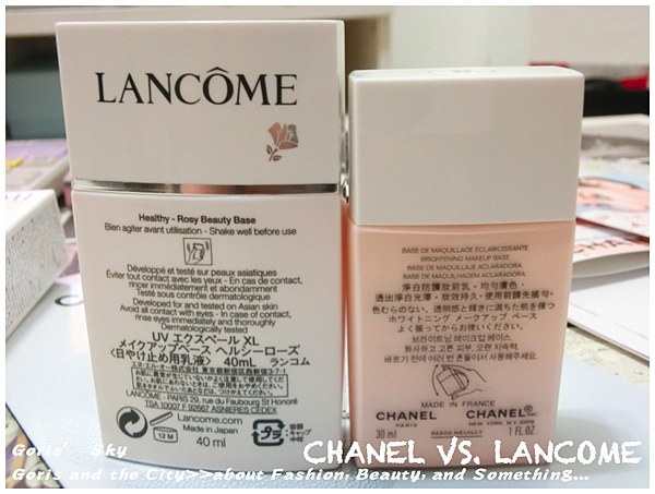 基本上LANCOME超輕盈玫瑰隔離乳 SPF50/PA++++和CHANEL珍珠光感超淨白防曬妝前乳 SPF40/PA+++雖然都是玫瑰潤色,但效果上還是有所不同,所以比較一下,呈現給大家。