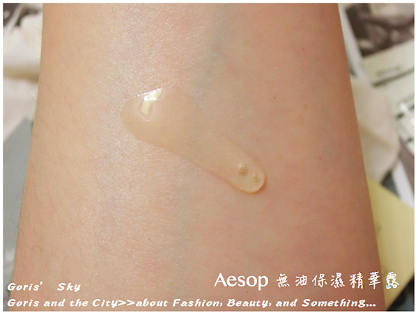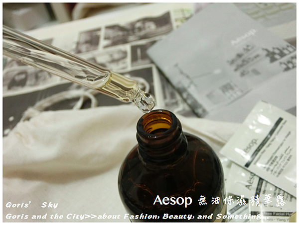這罐Aesop無油保濕精華露大概就是每次去,專櫃人員都喜歡推薦我的產品,每次附的Sample也絕對會有這包,基本上,對於台灣人來說,Aesop的乳霜多數太滋潤,都不是太適合台灣人,特別是夏天。也因此,專櫃人員建議的保養步驟,就會化妝水後,就到無油保濕精華露就好,就是用以精華液的步驟,用以取代最後鎖水,也確實是清爽、簡單許多,也就比較不會有後續乳霜的黏膩厚重,必要的時候,再局部加強不夠保濕的部位,或是冬天的時候,再換成更滋潤一點的乳霜,也因此,這瓶無油保濕精華露感覺也成為Aesop主要力推,同時用來取代作為最後保濕步驟的。