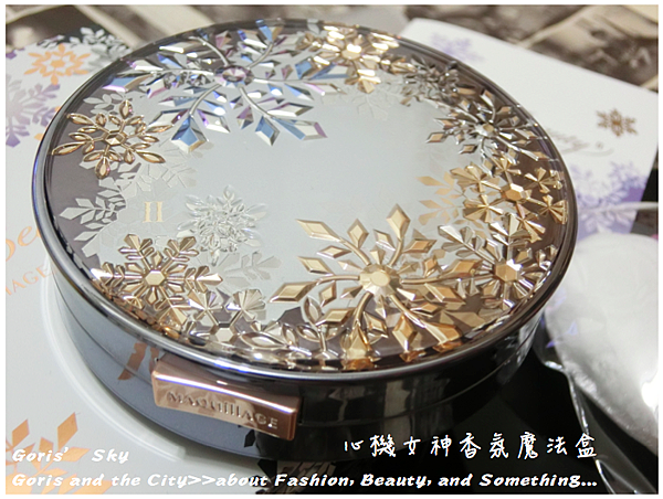 有別2014年的心機白雪香氛魔法盒只在蜜粉上壓MAQuillAGE LOGO字樣,2015年的心機女神香氛魔法盒就更豐富了一點,除了Snow Beauty外,還有片片的雪花,顏色看起來雖然粉白色,但其實刷起來倒是挺透明的,一樣散發一種淡淡香氛味,所以我覺得用來當作晚安香氛保養粉反而更是適合不過。