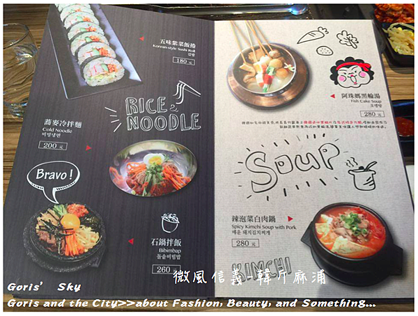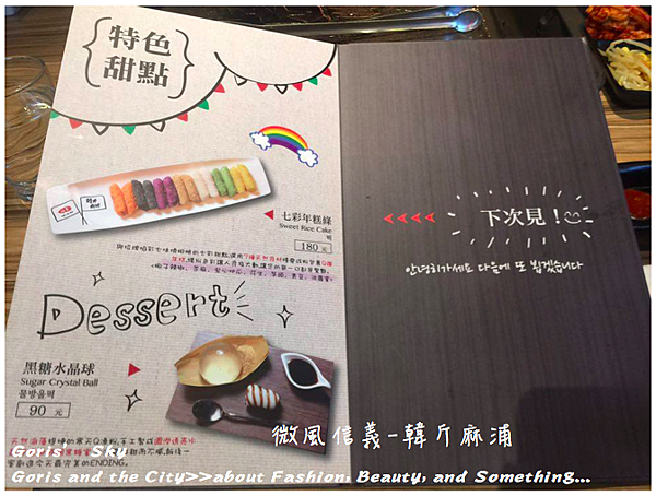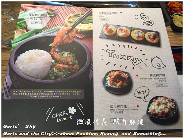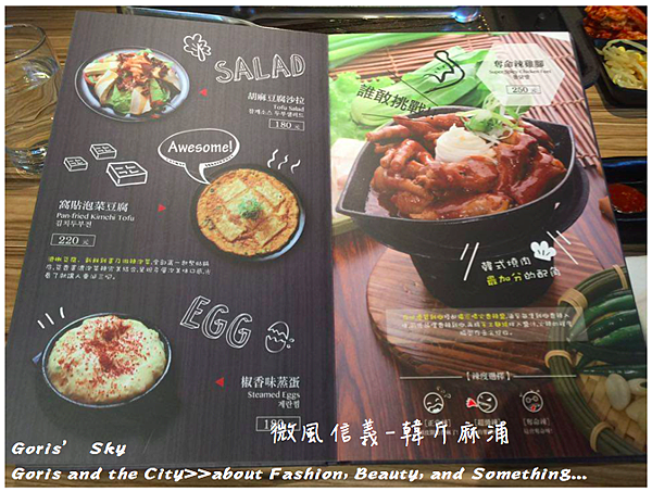 我認真說,MENU做的很棒、很可愛,單是看MENU就心情很好,什麼都想吃,活潑有意思,而且做的很生動有趣,單是MENU就能研究很久。基本上韓斤麻浦分套餐或單點,也有湯品、烤肉、小點、點心、沙拉、海鮮等料理。