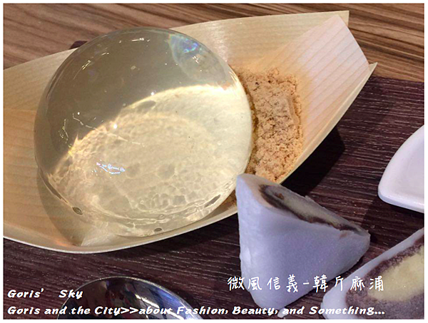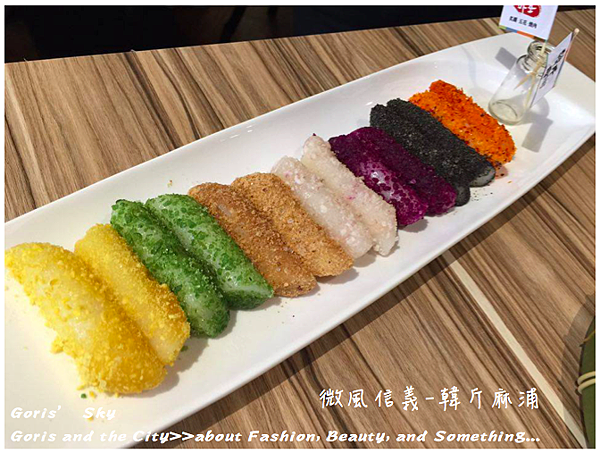 這單看MENU就會很想點,看起來漂亮,又賞心悅目,但我跟你說 ...,你吃完前面一堆東西,在吃這糯米年糕,真的是有些吃不下,然後先不管他七種口味是哪七種,味道是真的很廉價,而且就不是好吃的 ...,然後也不好咬,有點黏牙,也不好咬斷,味道也不好,就是個 ...很不好吃的東西。