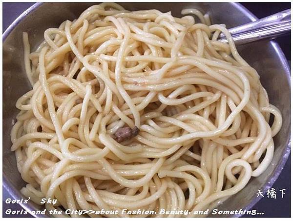這是這間店最有名也最厲害的炒麵,看似炒麵,我覺得比較像麵燙熱後,去拌的,你看照片會覺得顏色淡淡的,肉燥也不是很多,連什麼豆芽菜、韭菜、蔥、蒜都沒有 ... ,看起來超級平凡無奇,但味道吃起就是香又厲害,而且很順口,我靜養期間味覺都還有點跑掉,但就是吃這炒麵是特別有味,我一早都還是會拉著我媽去買,我自己也當運動這樣,這真的超好吃,推薦!
