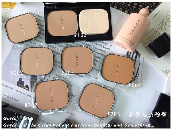 接著,就是同時推出的全新的晶采光感粉餅 SPF20/PA++,我一起把所有色號都照在同一張,會比較好比較,首先,這次的晶采光感粉餅 SPF20/PA++,強調的是擺脫過去粉餅常會有的"過粉"的厚重感,透過像是柔晶粒子、控油粒子,去打造柔滑但又具光感的底妝,然後將大多數粉餅喜歡用的白色粉體給大量減少換成柔光式的複合粉體,因為過去粉餅都必須透過白色粉體來完成遮瑕、修飾,但就容易粉感、妝感,這次晶采光感粉餅 SPF20/PA++,就是以一種比較透明感、鏡面感,卻又能調控肌膚出油狀況,在台灣是塊"正確"的粉餅下,去打造出透明鏡光感的舒爽底妝,這是這一次SUQQU晶采光感粉餅 SPF20/PA++的主要特色,你大概明白這特色後,再去試妝,會比較清楚知道自己試起來的感覺,以及是不是自己想像中、需要的底妝。