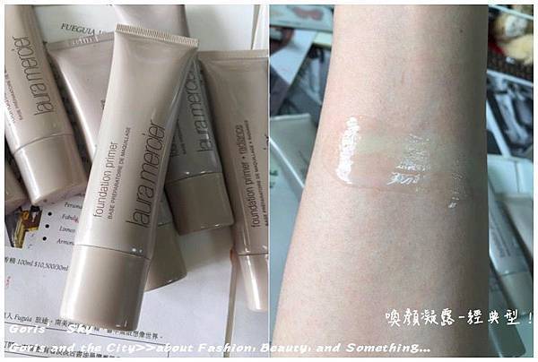 最經典,也最暢銷的就是一般型、經典型,可以說是大部分的人都適用,沒有太多問題,就是妝前給肌膚大量的水分,同時整理肌膚表面的紋理,有點像整肌感,你去想想,肌膚都會有紋理,加上可能有些瑕疵等,如果沒有整肌好,是不是上粉底就容易不勻或是凹凸之類 ...,因為我們通常為了讓底妝更好上,通常妝前,或是前一晚會敷面膜,增加肌膚保水度,但不可能妝前擦保養油、乳霜等太厚重的產品,因為只會讓底妝崩塌,特別是台灣的氣候,所以,像是妝前適合的保濕品,我們稱Primer,laura mercier就是這喚顏凝露,MAC也有,看你自己喜歡哪個,用哪個習慣。laura mercier喚顏凝露-經典型就是去大量於妝前補水,但又不會跟底妝打架,同時整理好肌膚紋理,幫助後續底妝服貼、好上妝等的主要效果,你可以嘗試看看,你上底妝前有擦喚顏凝露-經典型,跟沒擦喚顏凝露-經典型有沒有差,大部分是都有差,如果沒差,也恭喜你可以省下這一筆了,代表你不需要這個商品。