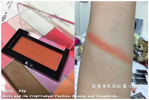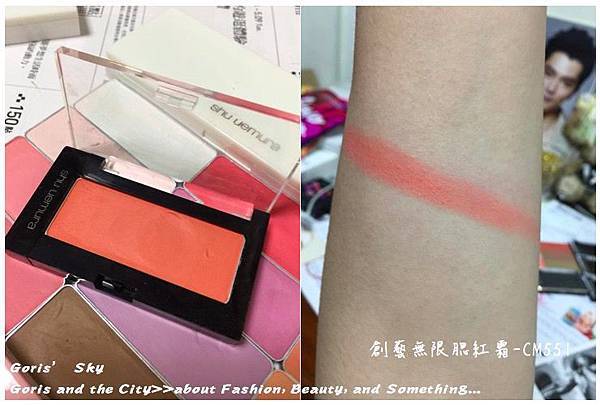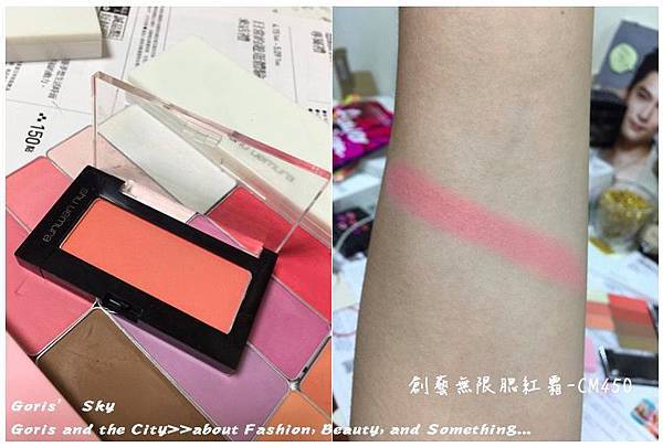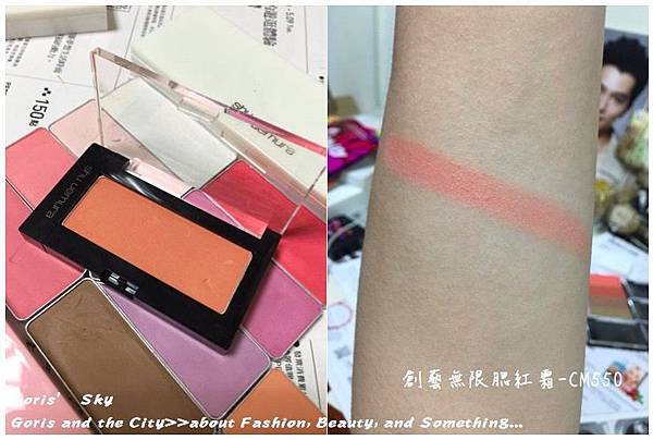 然後,如果你除了想要展現單純的活力感外,但就要有那種大家在講的鮭魚粉般的蜜橘色氣色,CM550就會蠻好看的,是一種活力明亮外,多一種柔和般的杏桃色調,這色會比較有意思,是一種蠻特別的好氣色腮紅。