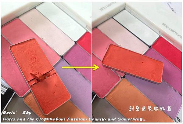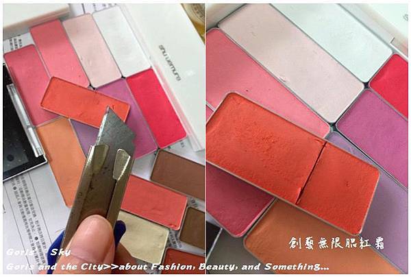 一割 ...,超療癒的!也太好割了吧,到底是我的美工刀太利,還是這植村秀這創藝無限腮紅霜超好割,那一筆真的是直接就像切果凍一樣,超好切的,我平常切紅葉蛋糕都還沒那麼好切,而且,切完、割完,真的也沒什麼濕潤的黏膩感。