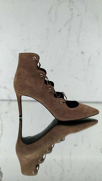 YSL棕綠色麂皮尖頭皮鞋/美麗的曲線,義大Outlet 3折好便宜