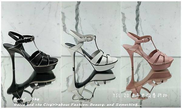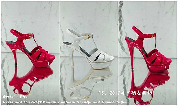 當然,更不能忘記鞋!YSL最經典,一定要有一雙的TRIBUTE,這次蠻多折扣款式的,從一般漆皮、皮革、特殊皮革等 ...都有!我自己是可惜我不是女人,不然這TRIBUTE一直都是我心目中相當美麗的高跟鞋款,同時也非常有YSL品牌識別度!最右邊的粉藕色,定價是30600,7折後是21420;右邊和中間的黑色以及白色皮革款,定價是30100,7折後是21070元,鞋這種東西,就是有折扣,有自己的size,喜歡了就要買了!不像包,沒分啥size,每次我在買鞋,都好像把自己當灰姑娘,喜歡了、價錢ok了,又有size,就是中了!該買了。
