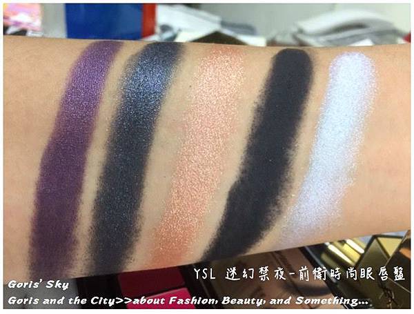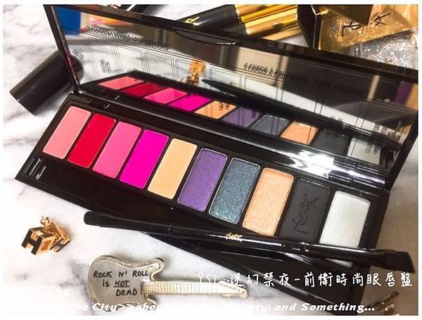 可能現在大家都太關注YSL的唇彩,但其實YSL的眼影倒是飽和度、彩度也都蠻夠的,主要是其質地帶有一點濕潤感,也因此ㄝ整個眼影飽和度、顯色度都很不錯,主要也是紮實,才夠延展,這次的迷幻禁夜 前衛時尚眼唇盤的眼影部分,從金屬光的藍調紫,到同樣是金屬光的孔雀藍綠色,然後玫瑰晶的打亮色,甚至是帶點螢光感的冰霜白,以及全霧面的純黑色等都一次涵蓋。