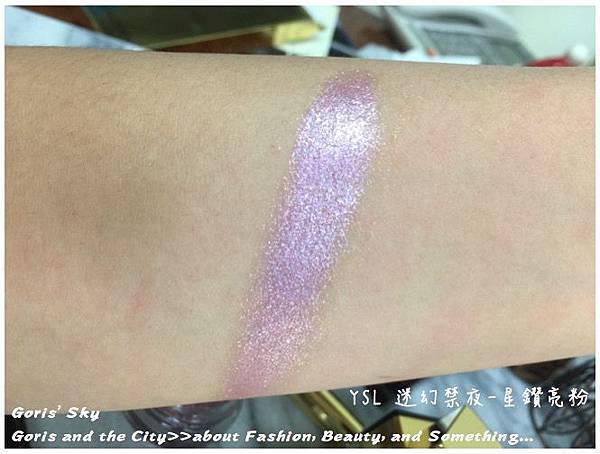 這比較好玩ㄝ算是YSL全新產品,一開始我以為只是眼影霜,但後來知道是個可以用在唇、頰、眼、頸、身體上的萬用亮粉,其實這種亮粉霜很多品牌都有,但大部分都是以眼影為主,但這種亮粉霜,依定很多人昂會在那邊苦手就是怎麼畫都泡泡的、不顯色,甚至質地就是不夠密集,我教你最簡單的判斷,如果你買了這種無論是亮粉霜或是眼影霜,通常打開來,會有兩種狀況,要馬就是澎澎的,是一個小丘型,類似CHANEL星沙幻彩眼影,要馬就是整個平面似的,就是YSL這次的迷幻禁液-星鑽亮粉,或者像是GIORGIO ARMANI的眼影霜,通常,澎澎的就會很散,不夠飽和,適合主要眼影後堆疊用,而平面式的,就會比較飽和,當作主要眼影也都ok,這是最主要的分辨!