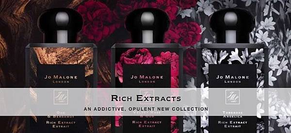 JO MALONE的黑瓶-芳醇古龍水一直都是品牌愛好者從白瓶 古龍水進階一級的首選,其洗練的黑瓶,加上味道更加的恆久、芳醇,因此吸引了一些對原本白瓶-古龍水不夠滿足的愛好者,終於,這原本傳出只有阿聯酋航空獨賣,後來確認是for中東限定的RICH EXTRACTS系列,其實只是將原有的三款芳醇古龍水,包括OUD & BERGAMOT 烏木與佛手柑、VELVET ROSE & OUD 絲絨玫瑰與烏木以及TUBEROSE ANGELICA 夜來香與白芷做限定的包裝。