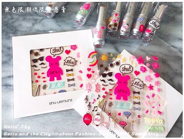 我是覺得這小熊果凍貼紙蠻值得收藏的,上面就是我自己隨意DIY貼的,莫名覺得好潮好好看!也讓原本單調、有點乏味的植村秀MLBB限量無色限潮流唇膏變得有趣多了,反正回到彩妝很簡單的核心,不就是好玩、開心,最重要!