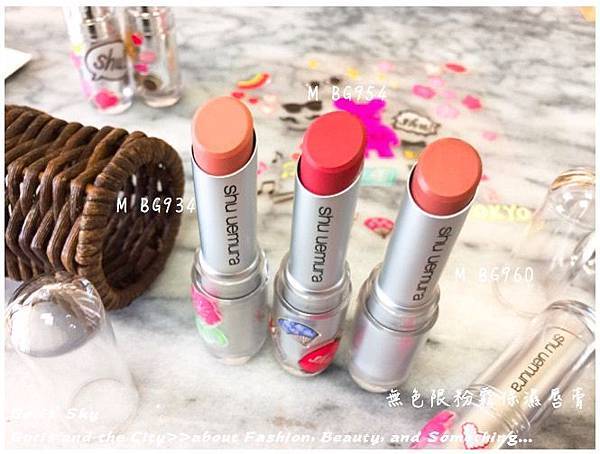 大概是這樣,其實這次的7色無色限潮流唇膏中,無論是無色限粉霧保濕唇膏又或者是無色限寶石光唇膏色調上都還蠻好看也蠻符合當代唇色潮流的,但我個人覺得最大重點還是那原裝進口的shu shu bear小熊果凍貼紙啦!莫名覺得自己DIY在唇膏上,又很純正的日系、很東京、很文化概念,同時又是植村秀X植村秀的mix & match,就可以說搭配起來相當適合、相當好也相當好玩,反正是免費的,記得拿就是了!