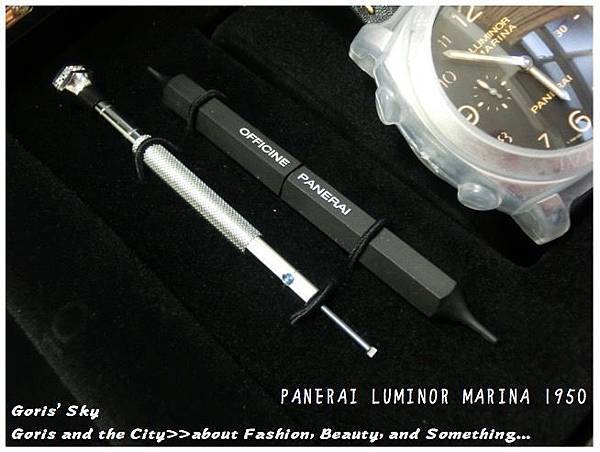 然後,開盒這就是我的PANERAI沛納海 LUMINOR MARINA 1950 44MM腕錶,還有一個透明橡膠套保護著,基本上,除了皮革錶帶外,還有附一個橡膠錶帶,旁邊有一些小工具,是讓你可以自己拆解、更換錶帶用的,但說真的,這三年來,我從來都沒有換過橡膠錶帶,一來是我覺得麻煩,二來,我不覺得橡膠好看。