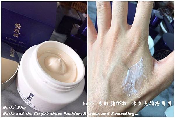 最後,在KOSE雪肌精御雅保養系列中的進階、加成保養,就是這KOSE雪肌精御雅 活力亮顏按摩霜,這種通常日系品牌才會有的按摩霜產品,其實有點類似滲透乳、導入液的概念,我們會用在清潔完後的肌膚,取適量然後在臉上按摩用,這按摩的過程中,其實就是在軟化你的角質,同時讓按摩霜、滲透乳這樣的產品本身的質地保養成分可以透過按摩的手法,更吃進肌膚,按摩完後,你可以用化妝水沾濕化妝棉做輕輕擦拭,也順便完成化妝水的步驟保養,請注意,這裡的化妝水是指保養型的化妝水,而非清潔型的化妝水(例如倩碧潔膚水),這樣的動作除了一方面完成化妝水步驟的滋潤保養外,也可以祛除按摩霜後臉部油膩感,但這時候你會發現,按摩霜後的肌膚在吃化妝水的滲透力、滲透感會更強一點,所以我都會說這樣的按摩霜產品是很類似急救用、幫助後續保養品吸收,特別是你沒時間敷面膜,或是一早急著上妝,又怕底妝吃不進去,都可以用這類的按摩霜去做晨間保養的急救,甚至是夜間你後續的精華、乳霜乳果是很昂貴的那種,這樣的按摩霜可以讓他們更好吸收,也可以讓保養效果更加成。
