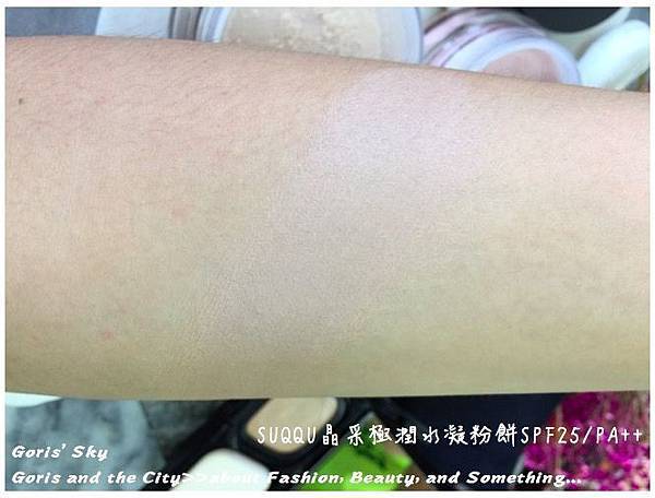 如此以來,就可以分4種型態,包括乾式的粉餅、摸起來冷冷的乾式粉餅、水凝粉餅、粉凝霜這樣 ...,服貼度基本上是遞增、清爽度自然是遞減,自然度也是遞增,粉感度相對來說也是遞減。回到SUQQU晶采極潤水凝粉餅,水凝式的粉餅剛好排序在這四者間的第三個,基本上,SUQQU晶采極潤水凝粉餅比較屬於乳液式的粉餅,不似粉凝霜像是乳霜似的粉餅,本來擔心就算是水凝粉餅,但摸起來是濕的,質地應該還會很黏,但觸感上倒是挺清爽的,也是因為這一次的SUQQU晶采極潤水凝粉餅是以蠟狀處方結合清爽低黏度油然後形成一層纖細薄膜的「融膚質地」,達到親膚同時爽膚的觸感,質地中因為蘊含很纖細的珠光成分,但一抹又看不出來閃爍,也因此,倒是擦起來是比較亮的,但要注意的是,儘管此款SUQQU晶采極潤水凝粉餅摸起來是濕的、是潤的,一完妝大概就是一種清爽般的奶油潤澤肌,但畢竟不是全粉凝霜的質地,上太多還是會有比較明顯的妝感,建議隔離霜後,薄擦,然後少量多次,其實就很保濕,同時也很具修飾性,同時也是一種清爽般的完妝爽膚感。
