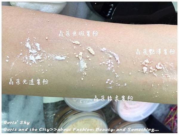 但這SUQQU蜜粉請不要用顏色去作為選色依據,因為顏色的修飾性真的不強,還是要從你的定妝妝感訴求去選,加上為什麼我沒有把這四罐晶采艷澤蜜粉、晶采光透蜜粉、晶采無瑕蜜粉或晶采絲柔蜜粉抹勻,為抹勻後我看起來的顏色都一樣!哈哈哈啊哈哈啊哈,但妝感的細緻度、效果還是比較不同的,這要真的你去拍在臉上照鏡子比較明顯,相機有點吃色,不太好拍。