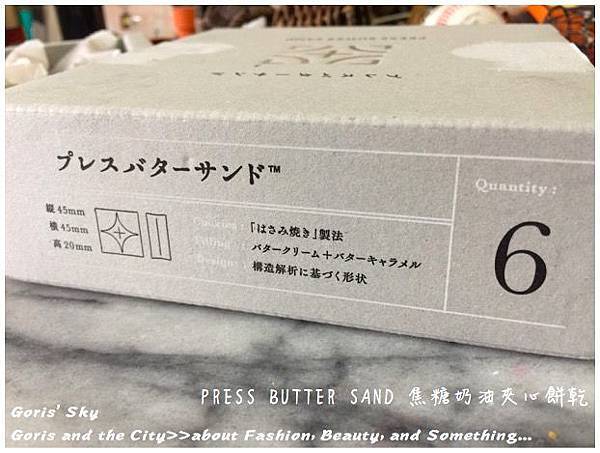 我是覺得這PRESS BUTTER SAND焦糖奶油夾心餅乾有點強迫症到在包裝上都還告訴你每一個PRESS BUTTER SAND焦糖奶油夾心餅乾長寬高也真的有夠驚人,實在也就只有日本人如此講究和細微,但也就能看出日本人對於食品的極致和追求,6入裝的包裝盒上會有6,10入裝的則會有10。