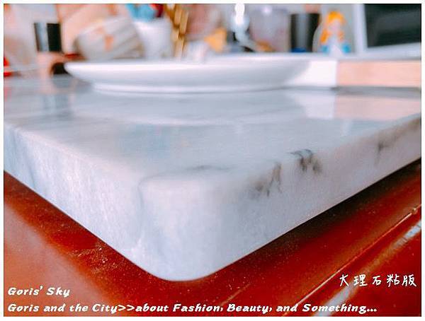 但這其實就是拿來當沾板、餐盤、擺盤用的,姐鼓我現在都是放我書桌上,直接當桌墊用,要拍照的時候,就把東西挪開,直接就是背景了,你看他側面,超級無敵厚的,我後來才知道他總重25磅,一磅等於453.59237g,換算下來這重達11340g,等於11公斤!我跟你說我當天真的超瘋的,我想說我有開車,櫃檯問我要宅配嗎,我還說不用了,停車場就在樓下,我提下去就好,當我要提離櫃檯時,我就有點後悔了,也太重了吧!