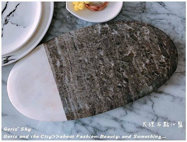 因為後來我自己很堅持要買真的大理石,就是因為我也有買過那種大理石紋路的背景紙,我真心覺得拍起來就是假、不美,後來我心一橫,就想說直接買一塊大理石,才知道Crate&Barrel有那麼多的大理石餐盤餐具。
