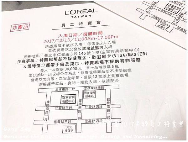 集團旗下包括蘭蔻、kiehl's、植村秀、碧兒泉、VICHY、理膚寶水、MAYBELLINE、卡尼爾、巴黎萊雅等 ...的台灣萊雅集團,將於2017年8月16日至8月18日,舉辦連續三天的員工特賣會,同樣的須憑邀請卡入場,放心不用對證件,過往的經驗多是停產品、季節限量品等產品為主,我沒有拿到特賣明細,就只有特賣會邀請卡,所以就是做一下資訊揭露,同時贈票,邀請卡主要發放給萊雅集團的內部員工,因為特賣會需要憑邀請卡入場,所以,有興趣的人可以看看是否有朋友在萊雅集團上班,可以向之詢問。