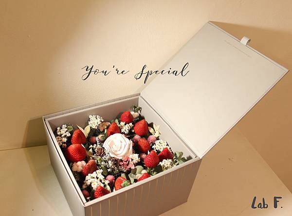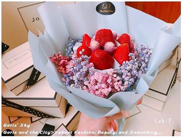 Lab F.的F. 意思是 Flora, Food, Fragrance ,主要想要強調的精神是品質、創新,同時是發自內心,以新鮮草莓乾燥花束為主打,所以全都採訂製包裝,然後限量販售,同時也是全台灣採低溫宅配,以確保新鮮草莓最佳口感和品質,你可以參考他們的官網 https://liteshop.tw/p/uMdQzBs/u/hb3kN6 或者是粉絲專頁 https://www.facebook.com/LabF520/ 都還蠻清楚的。