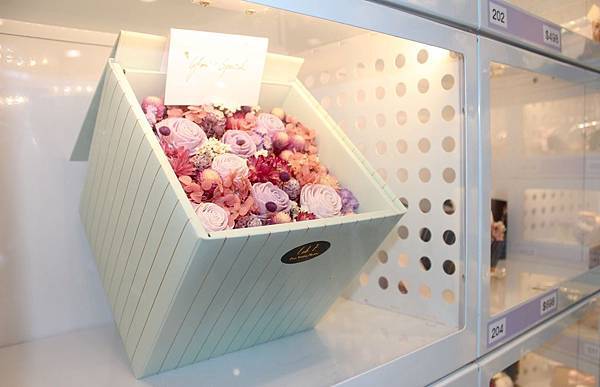但如果你是想要比較潮流、隨時,甚至是簡單的乾燥花禮,近來韓國很流行的乾燥花販賣機Lab F.也有,也是目前全台灣唯一24小時都能購買的乾燥花販賣機,就在台北101和台中勤美商圈!