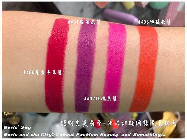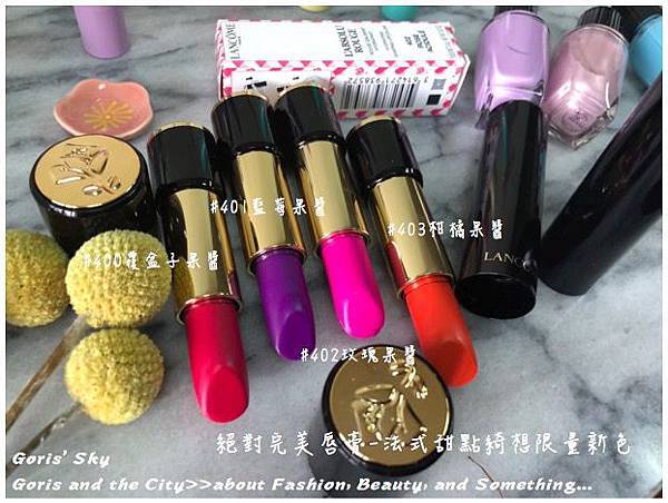 LANCOME的絕對完美唇膏在在全面更新後,還真的是有炒起來,當除了外型更時尚、精品外,一大助力自然是鬼怪的金高恩#264,然後近來的國民初戀秀智色#373整個又大火,也因此讓越來越多人認識LANCOME這絕對完美唇膏,這次在限量春妝中的法式甜點綺想限量色中,靈感來自各種法式甜點果醬的新限量四色,飽和般的糖蜜色彩,有著覆盆子、藍莓、玫瑰、柑橘四種口味。