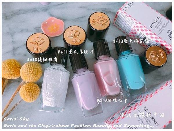 最後,就像是為所有完成的甜點擠上最後的糖霜般的法式光燦指甲油,薰衣草色般的脆片、揉入新鮮玫瑰的奶昔以及夢境般的棉花糖藍,再撒上最後糖粉般的繽紛糖霜,就是相當法式寫意法式甜點綺想感。