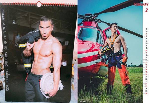 因為我手上只有這本2018法國消防員月曆:無國界消防員版本(Calendrier des pompiers 2018 : les Pompiers sans frontières),我就都自己翻拍,然後從封面到每一個月份去和台灣這一次新北市推出的「2018消防形象月曆發表會」一起做m to m的比對,個人是覺得我們台灣也是沒有輸,重點是,台灣的除了有一群猛男外,穿插一些女性消防員我自己覺得她們呈現出的態勢、氣勢、氣息,儘管不是透過搔首弄姿,甚至是裸露的方式,一點都不會輸給無論是法國或是台灣的男性消防員!