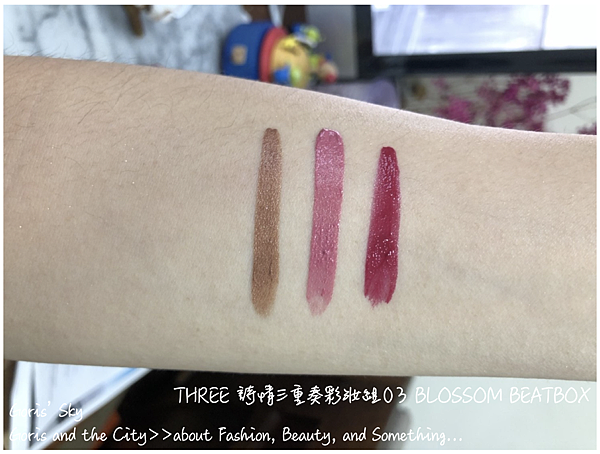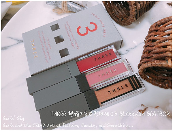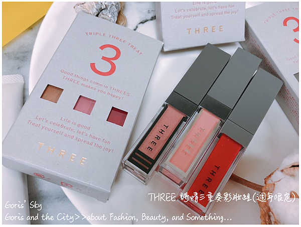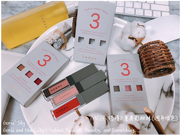 THREE顧名思義就是3的意思,也因此,每年的3月,3/1,甚至是3/3等 ....,對THREE來說都是相當重要同時週年的特別日子,去年3/3開賣的三重奏彩妝組因為將魅光眼彩蜜、魅光修容蜜以及魅光唇果蜜都mini了,然後做成一個set的特惠販售,每個set都還藏有一款限量新色的相當大受歡迎,所以今年同樣模式,也出了三組的週年限定的詩情三重奏彩妝組,顧名思義,今年唇彩就從本來的魅光唇果蜜,換成同樣今年1月才上市的,介於唇蜜和唇釉的全新質地的全新唇彩詩情霧光唇漾!