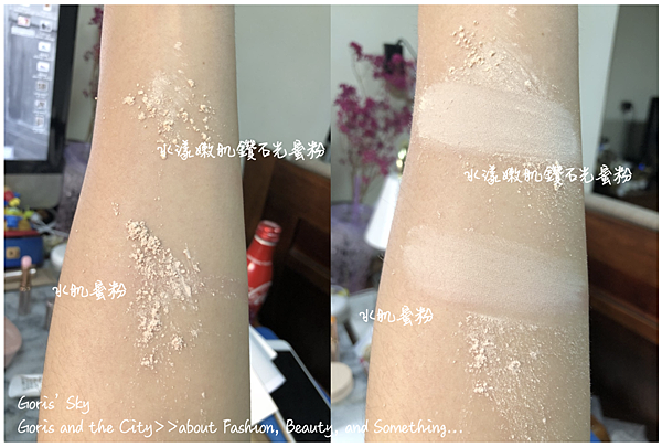 一次來做這兩款COVERMARK蜜粉的比較,COLVERMARK的蜜粉能夠沒有內建篩網再去做過篩,就是要說明他們的蜜粉本身粉質就夠細,就類似和KP是採超透澤微粒子概念,而比較受到大家歡迎,同時CP值很高的30g水肌蜜粉,它是一種有點帶粉紅,但也不是跟你說完全紅感的蜜粉,比較像是一種蘋果光的概念,很溫煦,同時柔和的去細緻你的肌膚,呈現一種蘋果柔焦肌,如果你都沒有用過COVERMARK,從這水肌蜜粉入門就是了;另一款水漾嫩肌鑽石光蜜粉雖然容量少一點,價格也高一點,但就比較像是KP,甚至是水肌蜜粉的升級版,如果你在意的是更光感,但又不是珠光喔,是那種蜜粉定妝後的立體光澤感,看起來肌膚會比較飽滿,緊緻,同時比較立體的話,就可以進化到水漾嫩肌鑽石光蜜粉,但通常都是水肌蜜粉用到不滿足後,才會進化到水漾嫩肌鑽石光蜜粉 ,通常入門建議都還是水肌蜜粉,因為其真的CP值高到,容量大到你拿來全身撲都不覺得浪費,特別是那種夏天你擦完身體防曬還會覺得粘膩的話,就很好用來拍拍,可以看起來有一種自然的蘋果光潤,也能降低防曬品的黏膩感,但要更進化,同時追求臉部立體妝容的緊緻,就可以升級到水漾嫩肌鑽石光蜜粉 !