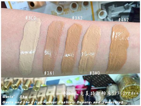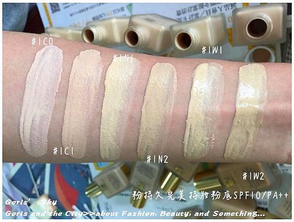 前面是基本摘要粉持久完美持妝粉底和粉持久微霧光澤水粉底的簡單比較,接著來看實際測試,首先,我要先說的是如果你看粉持久完美持妝粉底色號,以為持久微霧光澤水粉底就通用,倒是有些不同,因為上面同樣都是色號#1W1 BONE,但蠻明顯的持久微霧光澤水粉底比較淺一點,然後,持久微霧光澤水粉底質地比較水感、透,這也是很清楚的,相對粉持久完美持妝粉底就比較稠、比較厚一點,所以遮瑕力、修飾度,必須承認,事實就是粉持久完美持妝粉底比較強。