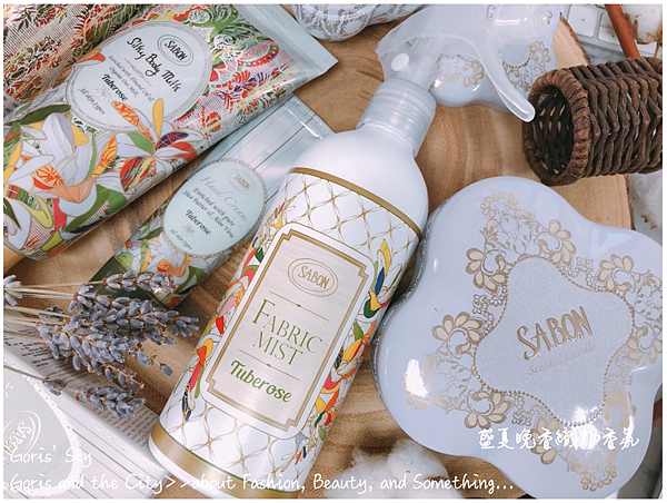 之前SABON針對限定的橙花系列就有推出相關衣物香氛保養產品,這次搭配的SABON盛夏晚香全系列則僅有盛夏晚香織物香氛,這主要就是如其名的用來使用為於窗簾、毛巾、靠墊等織物用品,但又不傷害織物,通常我會建議可以噴在衣櫃中的衣服,讓衣服吊在衣櫃中,就是最自然的衣物擴香體,整個衣櫃都會散發出但點清香,大概是這樣使用。