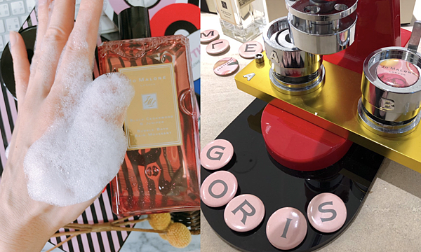 這次有一個超級好玩的就是JO MALONE首次推出的客製化英文徽章服務,可以選你想要的英文字母,然後自己刻,現場刻、現場好,共有3種圖案、26個英文字母,然後會將徽章穿過綁在你的包裝上,基本上是消費任兩件以上的商品即可,詳細活動可以洽專櫃,台北SOGO復興館JO MALONE專櫃率先開跑!