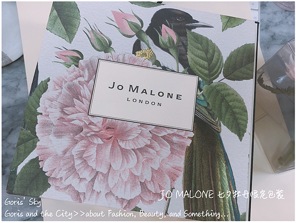 實品封套的包裝質感相當不錯,其醒目的牡丹花卉,然後喜鵲駐足於其中,呈現的方式有點像是手繪水彩的概念去呈現,更符合我們華人的傳統文化style,連結華人的七夕、還真的特別有感覺,正中間的JO MALONE LOGO也絲毫不違和,搭配起來的協調感,可以說是有史以來最古詩氣質的包裝。