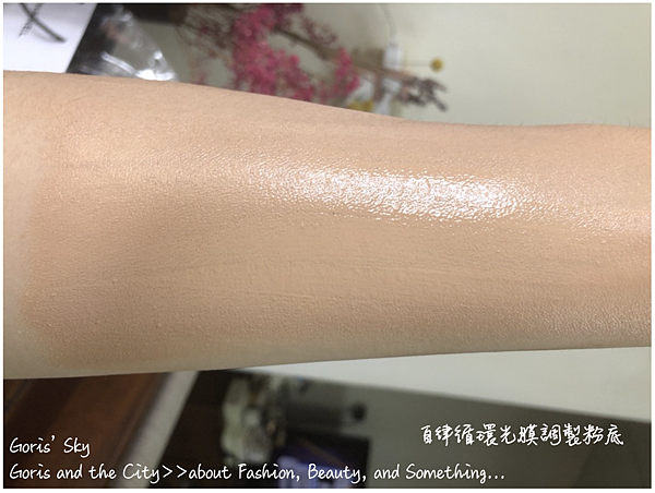 這主要是這瓶自律循環光膜調製粉底SPF25 PA++不似過往的粉底,都是單純以填補的方式來遮瑕,那容易讓妝感過於厚重,同時也容易不勻、卡粉,而自律循環光膜調製粉底SPF25 PA++採用的概念是,在你塗勻後,其會先形成一層透氣薄膜般的,覆蓋於肌膚表面,有點像先整肌的感覺,但這還不是修飾或遮瑕喔,而是讓其薄膜的光感粉體(但不是珠光),均勻的落於毛孔凹陷處,但落下的同時,並不是填補或遮蓋的概念,而是讓其能夠反射光線,就能補平毛孔凹凸所產生的陰影,讓視覺看起來光透、平滑、平整。