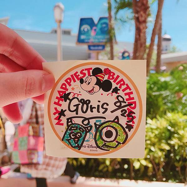 我這次來日本迪士尼過生日最大的目標完成了,就是只要生日前往迪士尼,你可以跟工作人員說,他會拿出一張生日貼紙,然後問你的名字,再看你想要寫什麼,接著,大彩蛋來了!我的G”O”ris的O除了兩個耳朵變成米奇外,當工作人員開始畫上毛怪和麥克華斯基的當下我都要尖叫了,接著又看到拿出彩色筆幫我著色,真的是感動到會落淚,也太可愛了吧!然後你就可以將這貼紙貼在身上,在園區裡如果工作人員看到你都會跟你說生日快樂之外,還能優先跟玩偶合照,就連買東西還容易會有小禮物!