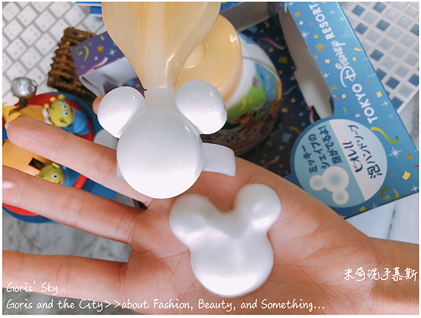 擠出來雖然想也知道不可能有鼻子、眼睛、嘴巴之類的細緻,但整個米老鼠的雛形都已經相當明顯了!而且你真的也不得不佩服這樣的創意,因為我們過去頂多洗手慕斯就是洗手慕斯,擠出來就是慕斯、泡沫而已,但迪士尼卻能夠聰明到,將壓頭設計成你我都熟悉的米老鼠模樣,然後隨著你按壓就會按壓出這樣夢幻的事米奇模樣!你說洗手一下不就洗掉了?但就是療癒在這剛擠出來的當下,讓人心醉。