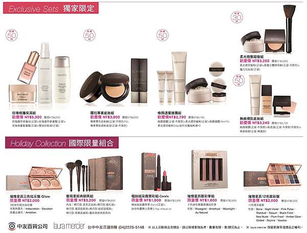 看完這一次laura mercier的週年慶主要重點後,以下就是完整的週年慶特惠組和滿額贈,特定百貨獨家、開賣日期,我也都有一一標注!