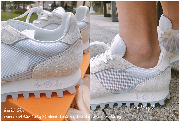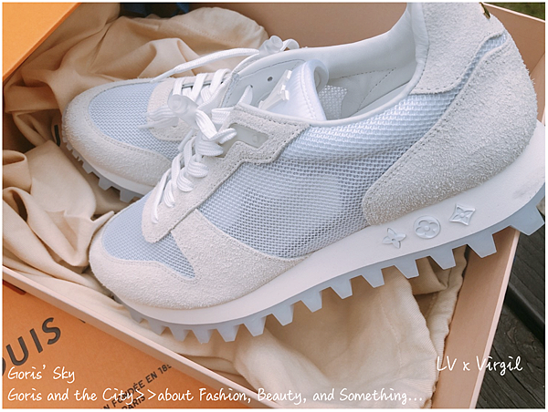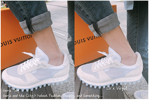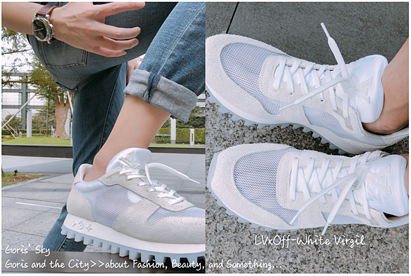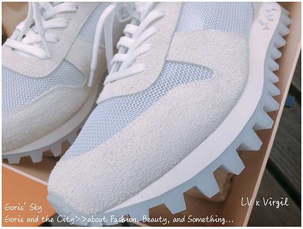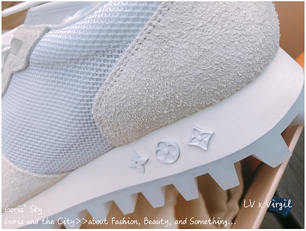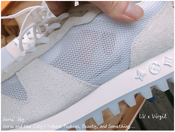 所以看到Virgil在LV的這鞋,感覺保留一點塑料的元素,但又以網狀透氣的設計反而更實穿一些,但下雨就不能穿,因為會進水!只是...這網狀材質以外都是麂皮,本來就不是雙適合下雨穿的鞋,重點是這樣的白鞋,真的要在太陽越大的時候穿,才真的會越好看,更能看得到透明感!