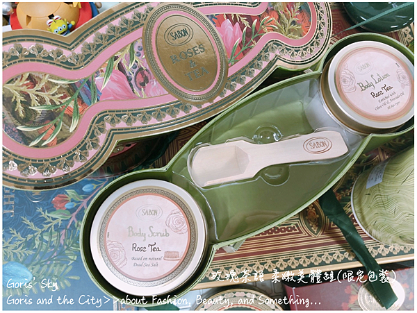 禮盒上有一個這樣特殊包裝的聖誕禮盒是SABON中我自己很喜愛的玫瑰茶語味道,所謂的玫瑰茶語,就是不只是玫瑰香氣,還帶有茶香、茶味,讓整個玫瑰茶語的味道顯得更是一種洗鍊、優雅的玫瑰香氣,是SABON很特別、具識別度的玫瑰味。