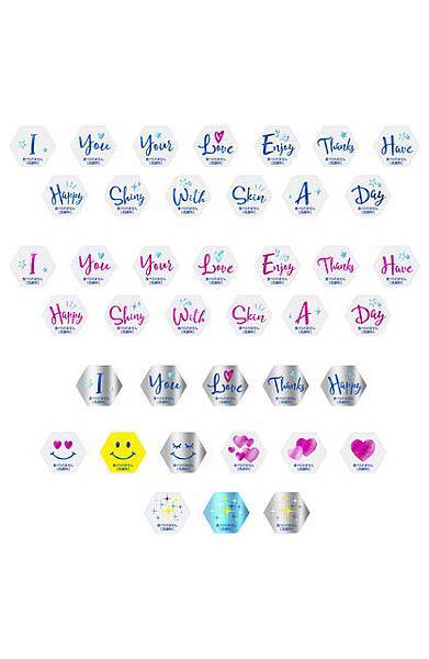 比較好玩的是字體,共有兩種顏色、兩套的的字體,字體包括有I、You、Love、Enjoy、Thank、Have、Happy、Shiny、With、Skin、A、Day等單字...