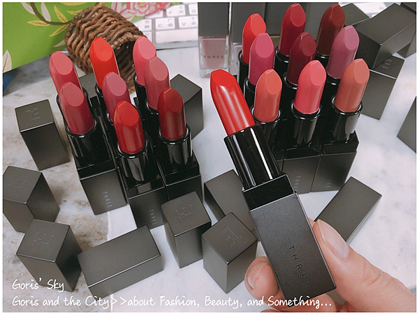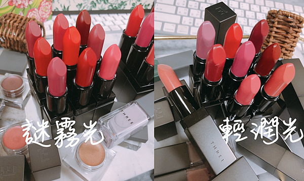 首先直接切題這次最重點,同時也是THREE首度推出的霧面唇膏「我型謎霧光唇膏」,9個顏色可以說是各類顏色都有,無論是紅、粉、莓果、紫、漿果等...,而有別其他品牌霧面唇膏,THREE我型謎霧光唇膏倒是可能因為主要的植物精油天然由來成分,所以唇膏滑順,又能如空氣感的輕盈,色彩的發色度夠凝聚,同時霧的很有光澤,你會說霧的很有光澤是什麼意思?你就想像是一條圍巾好了,圍巾如果沒有加金銀紗,自然不會有所閃亮感,但有些很頂級質感的圍巾,你單是擺在那,都能盛放出光澤感,就一種霧的很有光澤概念,我覺得THREE我型謎霧光唇膏就是這樣概念,歸咎其為什麼能夠如此,我推估是跟其成分添加9種植物精油有關,也就是一種植物精油的霧面唇膏。