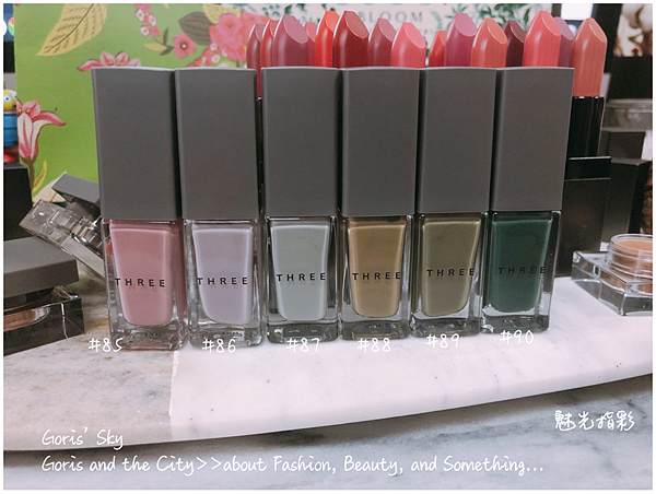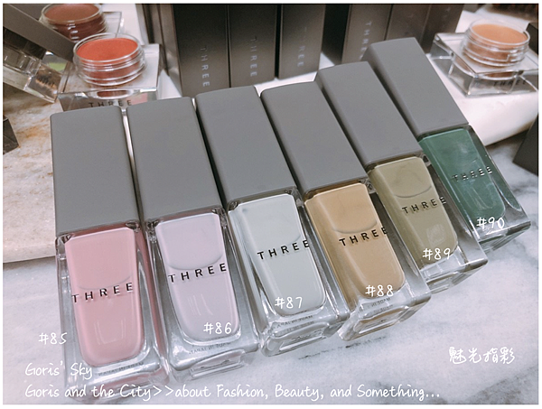 THREE的魅光指彩 一直都蠻受到歡迎就是因為其同樣是利用THREE品牌所擅長的植物油去調配、製成,同時比較強調高透氧,顯色的塗同時,對指甲也是很好的保護和照護,所以一直有一派人在瘋狂搜集著THREE的指甲油,也就是這魅光指彩 。