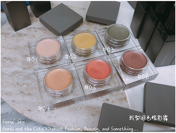 這一次除了「我型謎霧光唇膏」以及「我型色潤光唇膏」都是全新產品外,還有一個全新產品則是這「我型遊色眼彩霜」,稍微了解THREE的會知道這包裝很類似「魅光眼采粉」但就如其名,魅光眼采粉狀,這次我型遊色眼彩霜則是眼彩霜,是霜狀的質地,其同樣是THREE擅長的植萃植物油成份,所以上起來特別服貼,雖然不是很搶色、鮮豔的色彩,但倒是很THREE般的宛如奶油般於眼眸化開後,於發色和微妙光澤間的完美平衡,很服貼、也很自然,看似綠色、草綠,倒是用起來不會怪,因為很內斂,同時結合的很自然。
