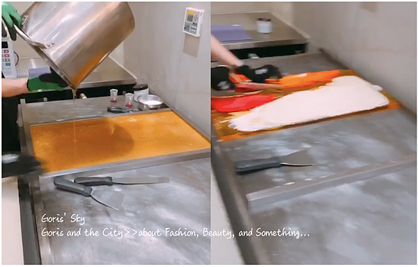 原諒我孤陋寡聞,我真的第一次看到原來糖果是這樣做的耶?而且原來糖果還可以現場手工做給你看,店員人很好,一些現做的,都還會直接分給現場的觀眾吃,第一次吃到這種現場做好的糖果,還有一點熱熱的,咬下去卻是脆脆的,香香的,然後香氣瞬間充滿整個口腔,一整個出乎意料的也太好吃了吧!